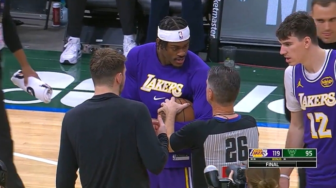 After the Lakers defeated the Bucks today, players from both sides and the referee started a tug-of-war over the game ball.