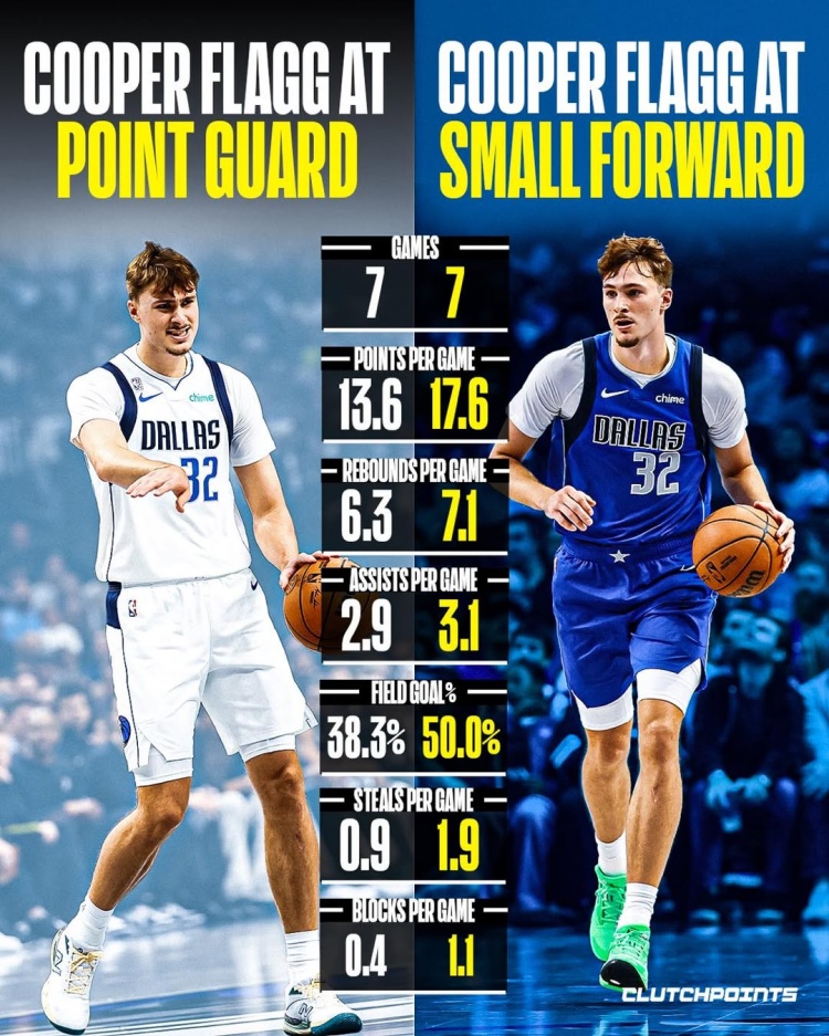 Flagg plays small forward: averaging 17.6+7+3+2+1& and shooting 50%, which is better than playing point guard.
