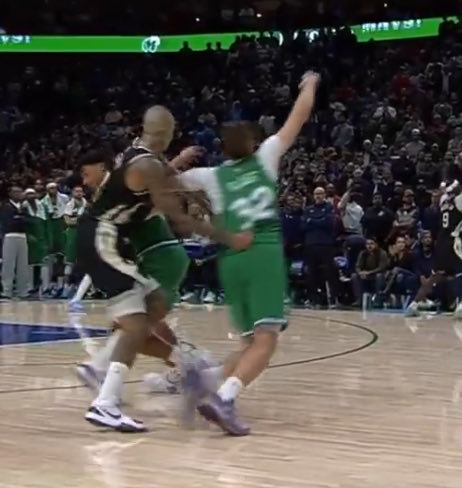 - It s so scary! Antetokounmpo s middle circle starts outrageously big strides gliding and buckles, and the opponent 3 players become the background board