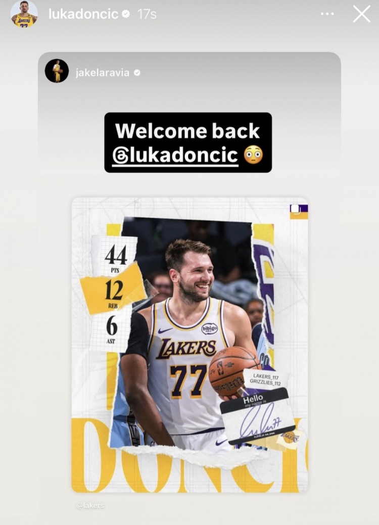 After the game, Laravia updated his personal IG and wrote: "Welcome Luka to return!"