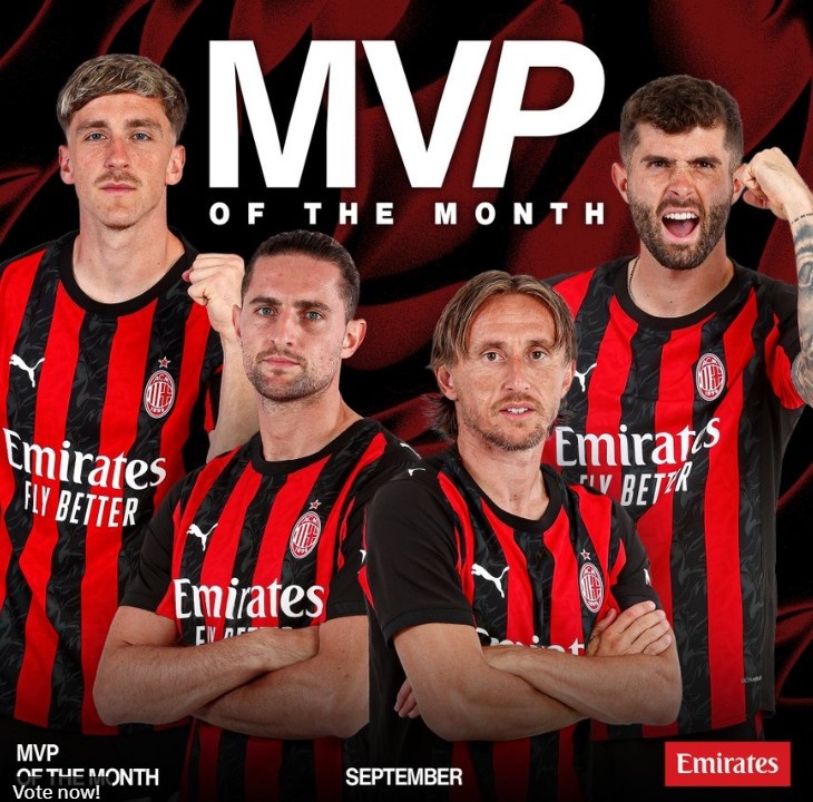 DunSports > Football > AC Milan s official September player candidates: Modric, Pulisic and Rabiot are listed