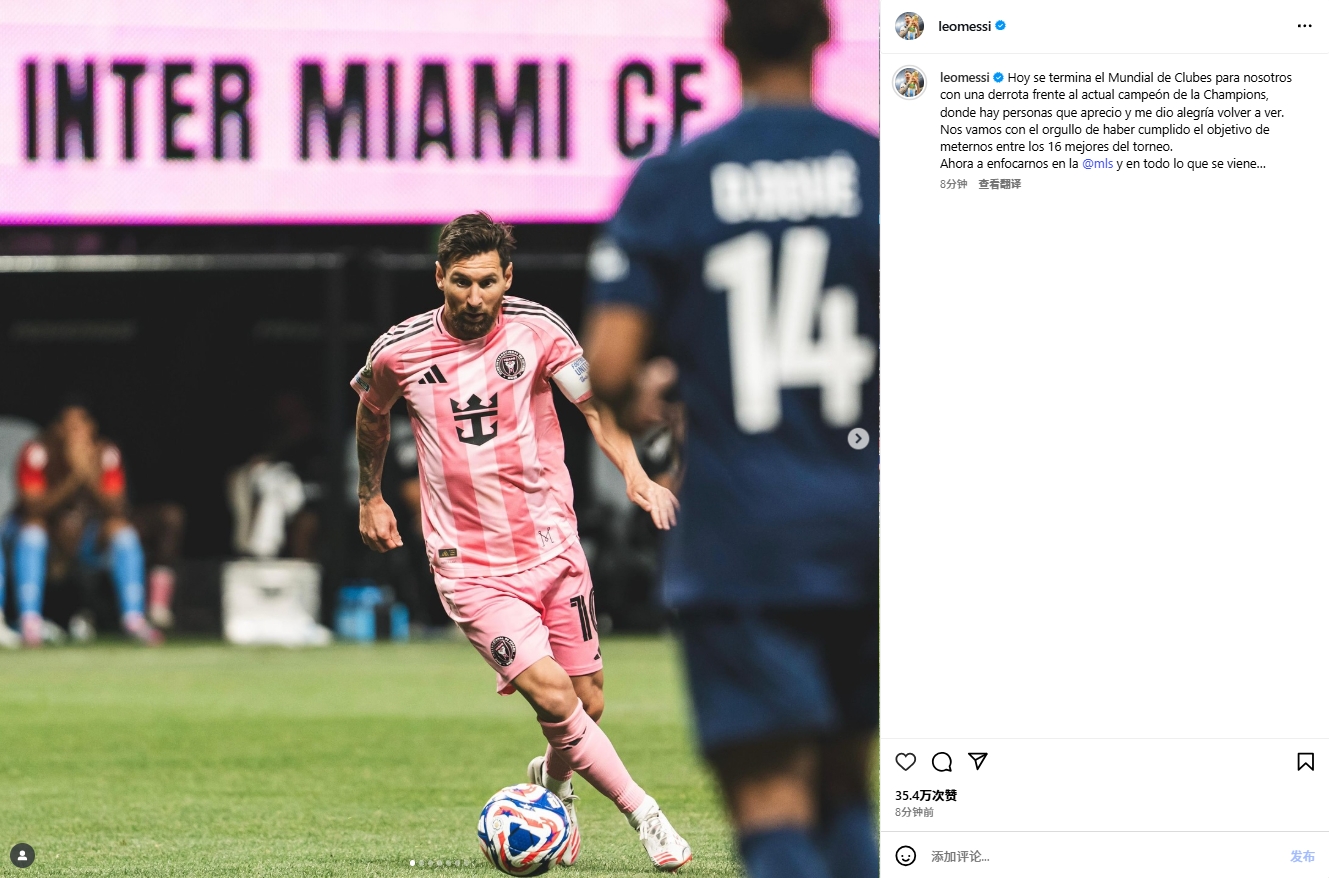 Messi wrote: Today our journey in the Club World Cup ended with a defeat, and his opponent is the New Science and Technology Champions League champion. I met some people who appreciated and respected during the competition, and it was so happy to see them again. We are proud to be able to make it to the top 16 of the tournament.