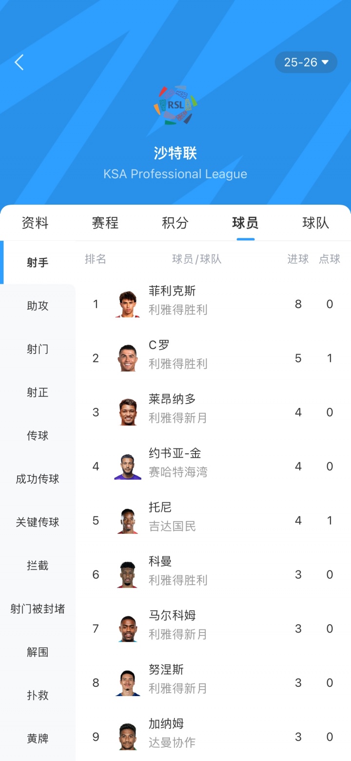 So far, Felix has achieved 2 hat tricks in 5 rounds of Saudi Arabia, scored twice once, and scored 8 goals to temporarily lead the scorer list. Ronaldo scored 5 goals and ranked second.