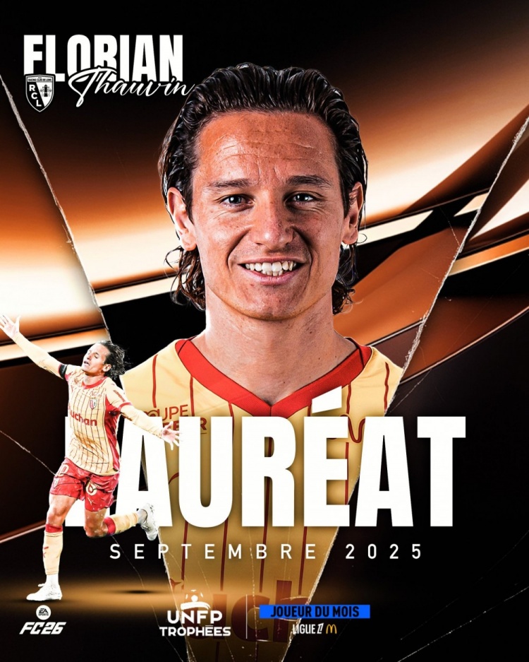 The French Professional Players Association officially announced that Lens' 32-year-old forward and offensive midfielder Thauvin was elected the best player of the French Ligue 1 in September.